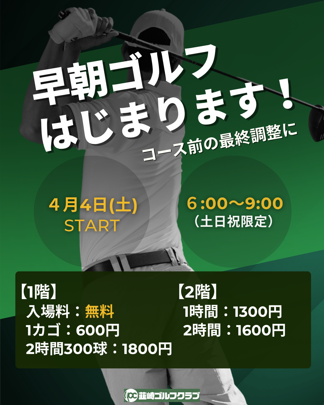 4/5(土)より早朝ゴルフ始まります!