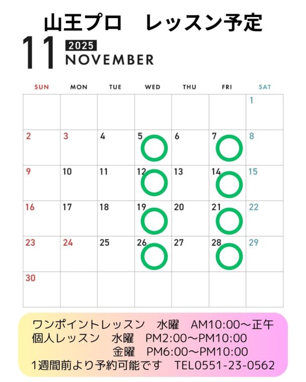 水曜日午前中開催の『ワンポイントレッスン』は比較的混みあいませんので、よろしければそちらのご利用もご検討くださいませ。